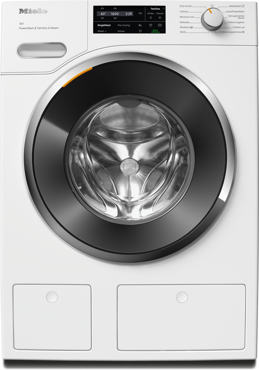 - 6. *compared with automatic dispensing without SingleWash **in the Minimum iron 40 °C programme compared with appliances without PowerWash and SingleWash