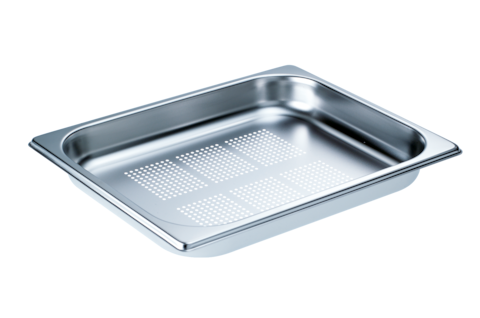 Perforated steam cooking containers